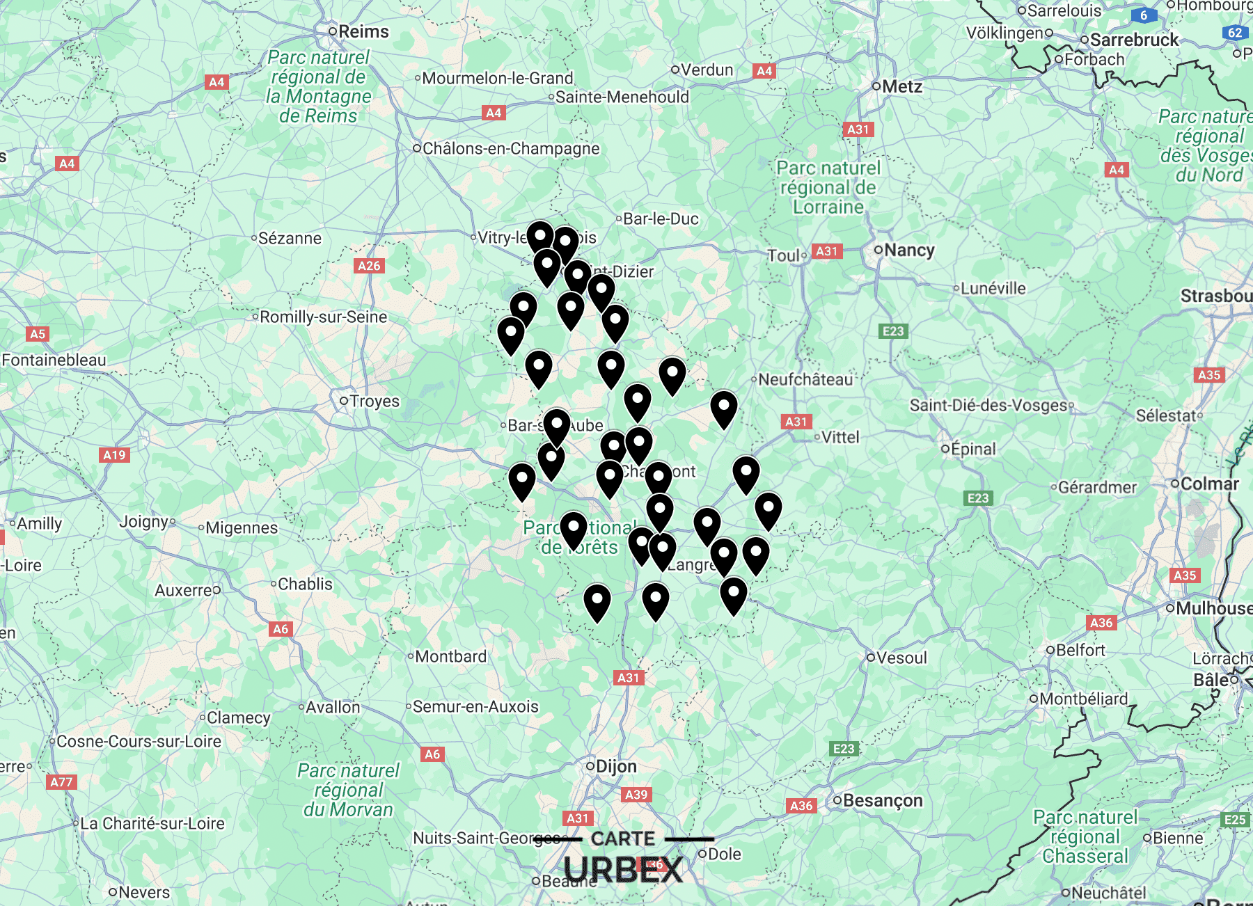 Carte Urbex Haute-Marne (Chaumont-Saint-Dizier)