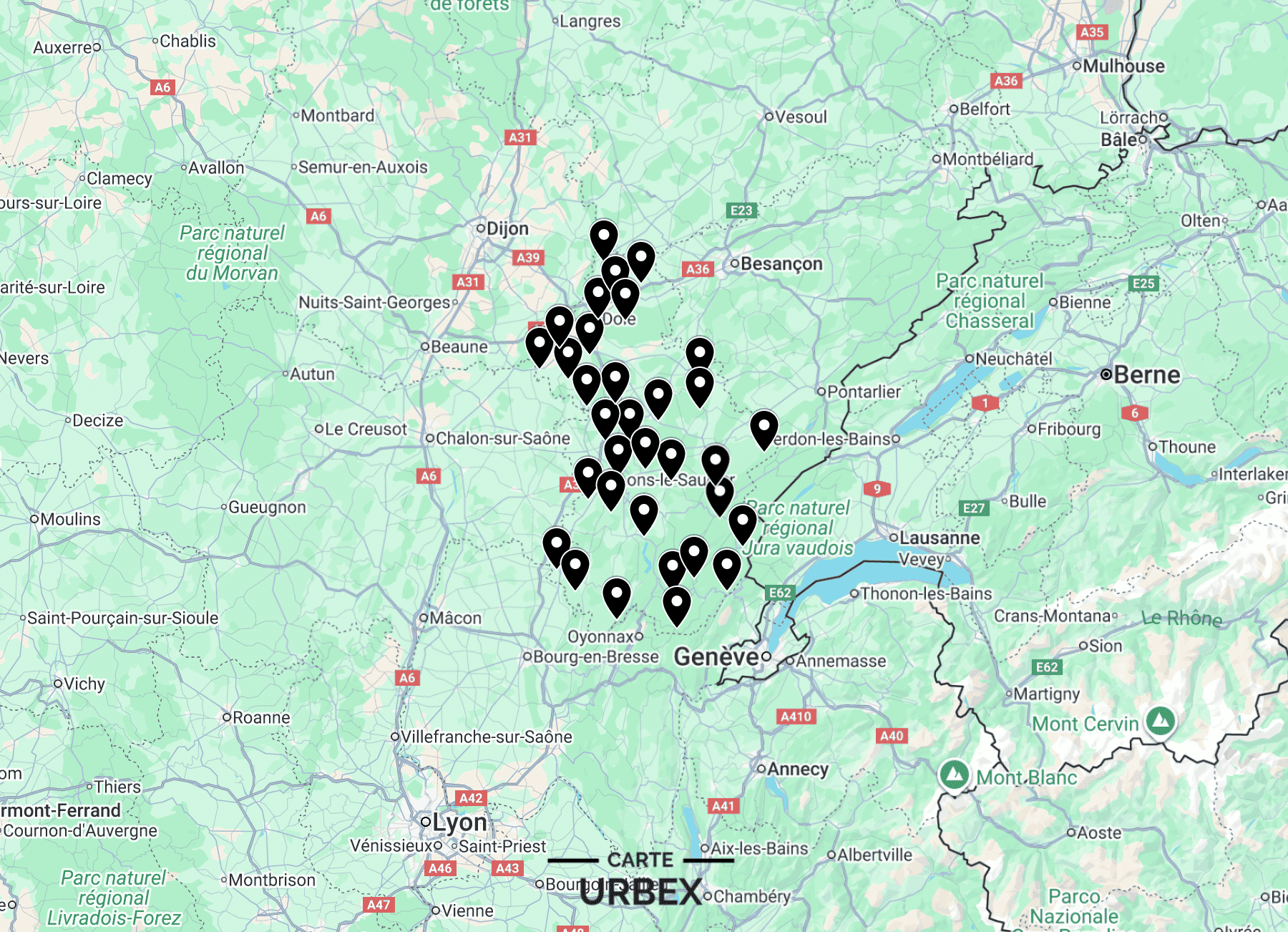 La Carte Urbex Jura est le résultat de toutes nos recherches et informations collectées. Avec plus de 30 coordonnées de lieux abandonnés répertoriées à travers tout le département, cette carte est une véritable mine d'or pour les amateurs d'exploration urbaine.