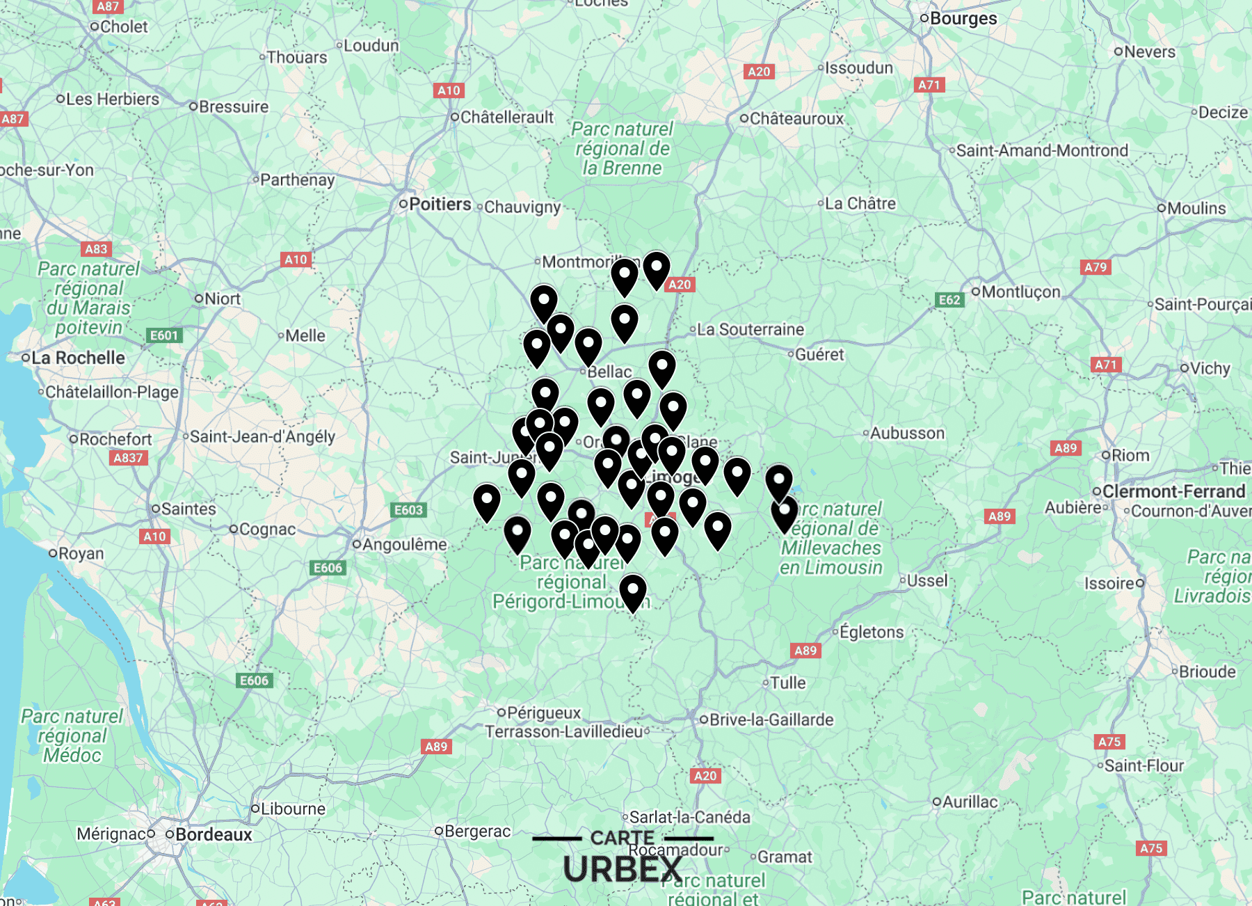 Carte Urbex Haute-Vienne (Limoges-Saint-Junien)
