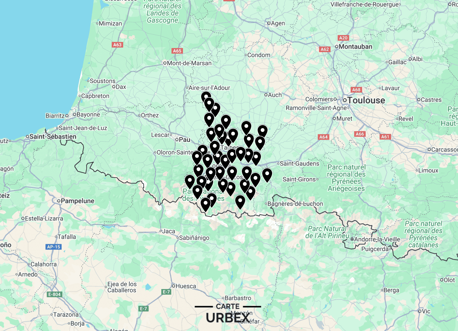 Carte Urbex Hautes-Pyrénées (Tarbes-Lourdes)