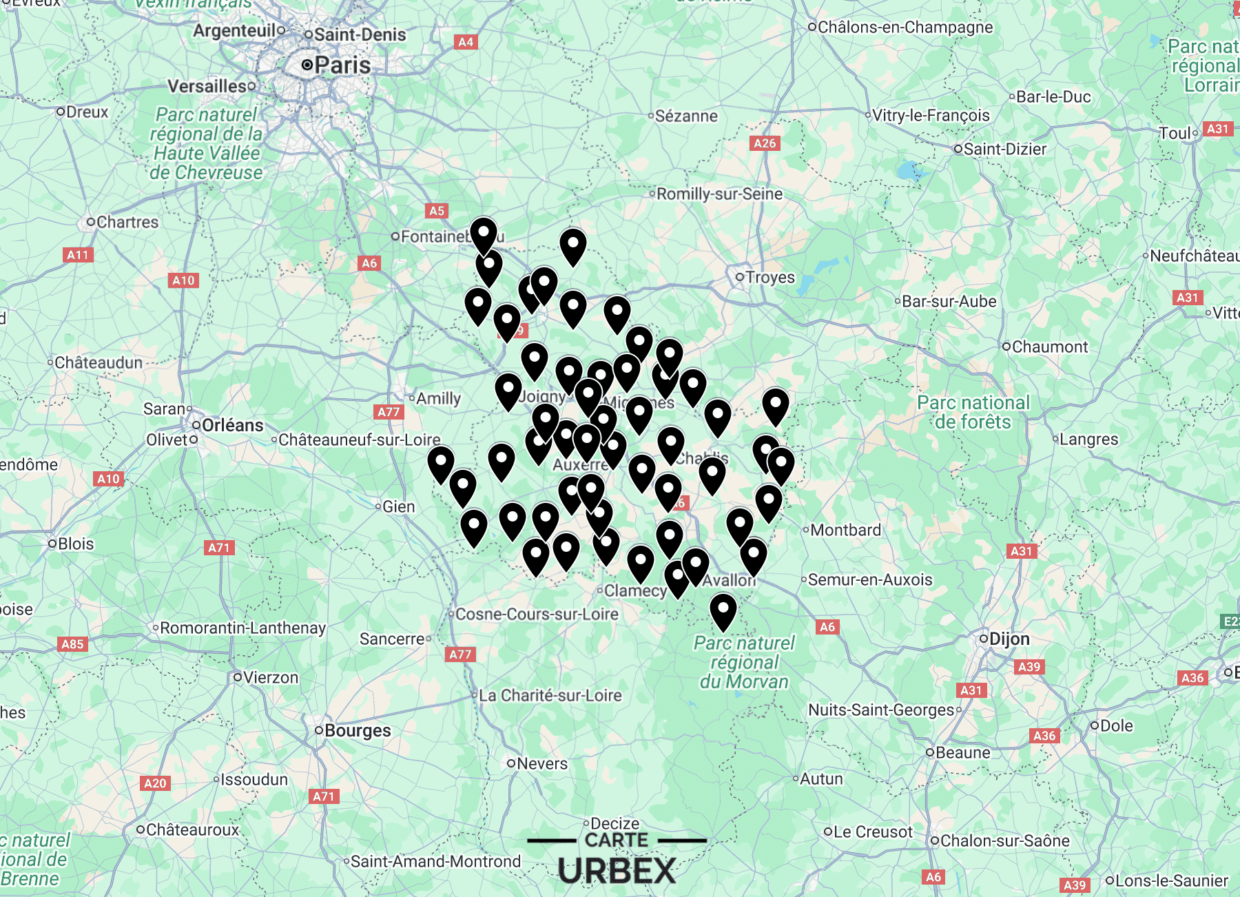 Carte Urbex Yonne (Auxerre-Sens)