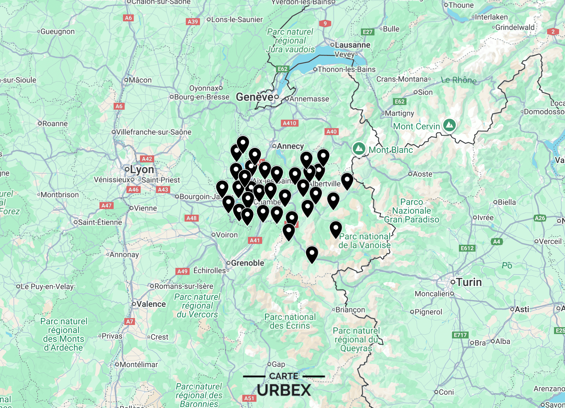 La Carte Urbex Savoie est le résultat de toutes nos recherches et informations collectées. Avec plus de 30 coordonnées de lieux abandonnés répertoriées à travers tout le département, cette carte est une véritable mine d'or pour les amateurs d'exploration urbaine.